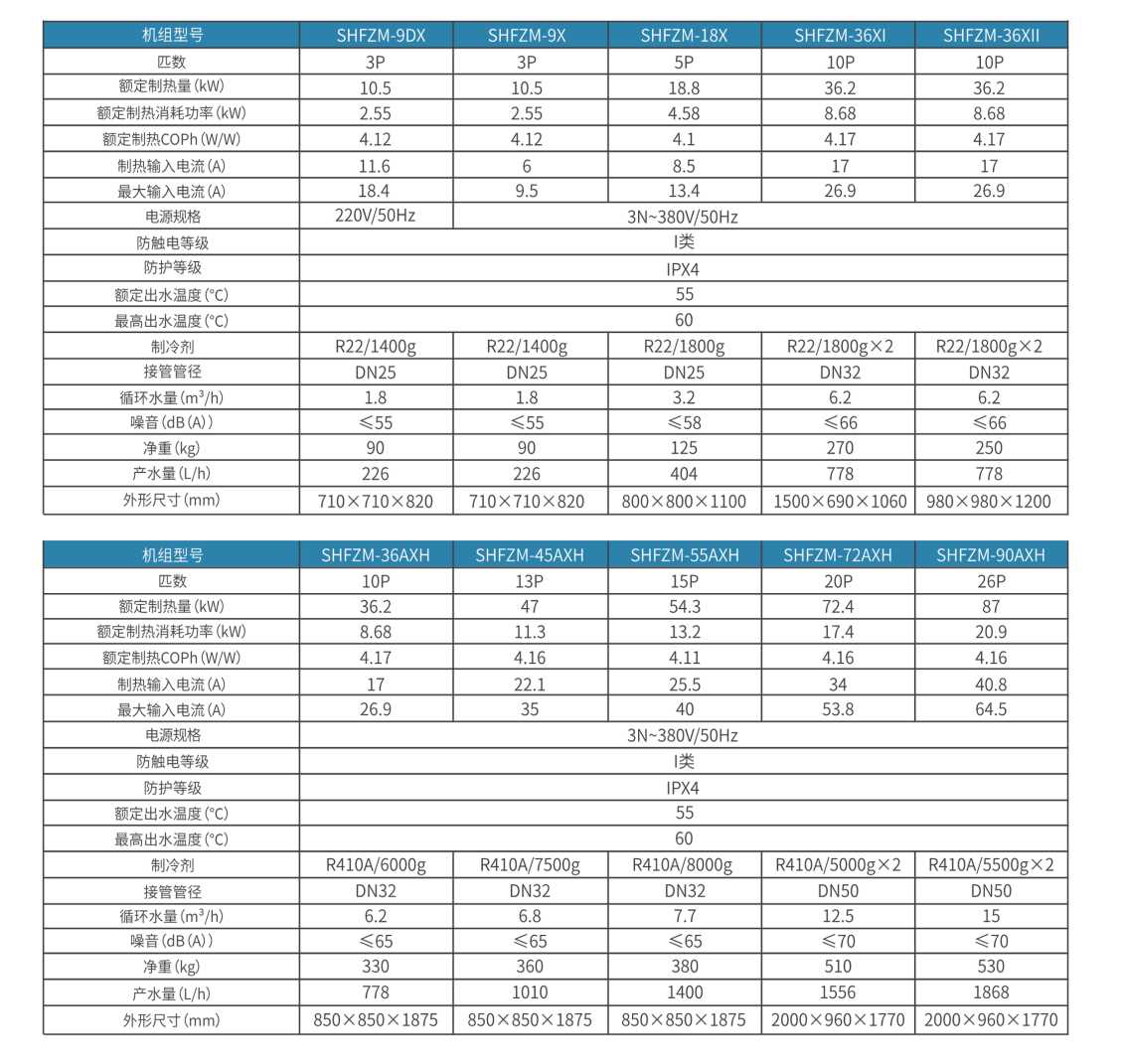 额定产水量:室外干/湿球温度20℃/15℃,初始水温15℃,终止水温55℃.