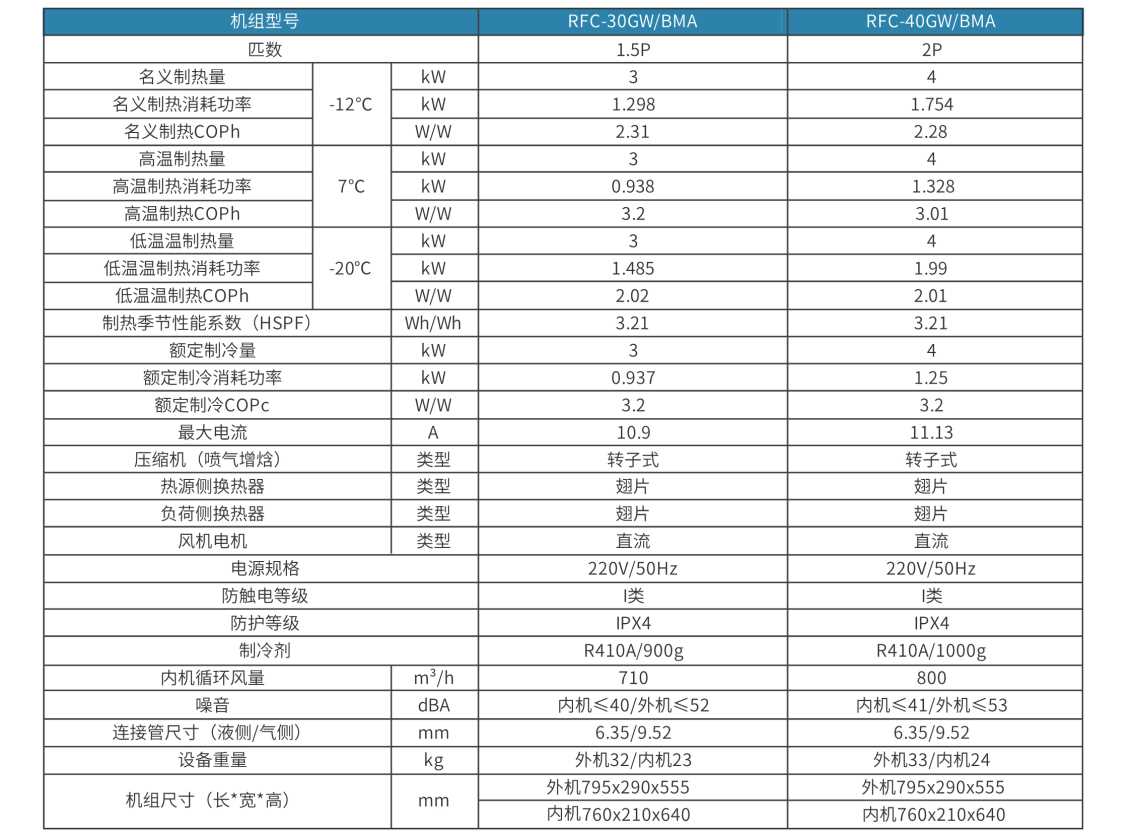 名义制热工况:室内干/湿球温度-12℃/-14℃;