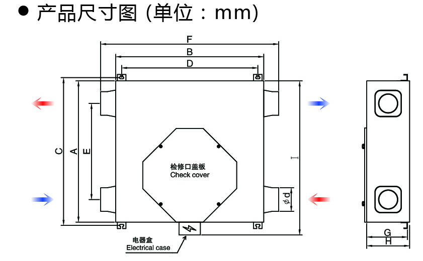 施工保养方便:采用底部检修口,马达,热交换芯体及过滤段都可由底检修口进行检修,施工保养更方便。